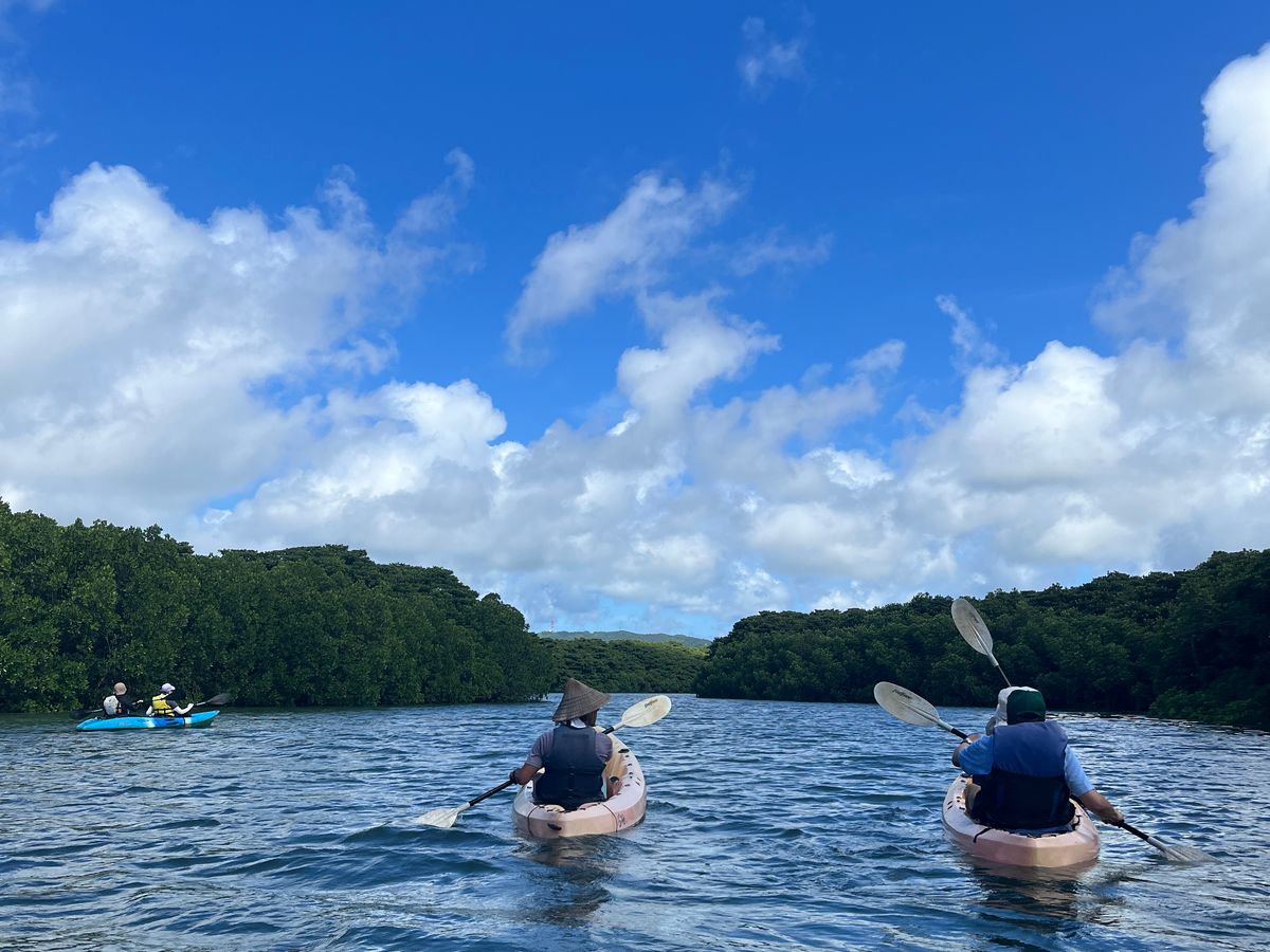 体験したのはマングローブカヤック。2人で行きました。岩場がある場所を避けて通る様に安全に誘導して頂き、途中可愛いシオマネキもいました。雨が途中降りましたが、石垣の天気が晴れる時も多かったので、楽しく過ごせました。生物や植物についての説明もあり、わかりやすかったです。シュノーケルの方は残念ながら天候に恵まれませんでしたが、次回の楽しみにしたいです。写真はiPhoneを濡れるので持っていけませんでしたがたくさん撮ってもらって充分でした。画像も綺麗です。ありがとうございました。