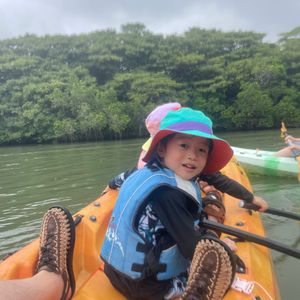 4歳7歳の男の子2人連れ、合計4人家族で参加しました。4歳はパパとペアでほぼパパのみで漕いでいました。また7歳とママのペアでも十分カヌー出来ました。上陸できるスポットではトントンミーと呼ばれるお魚が沢山いて、7歳は喜んで追いかけていました。そしてニコラスさんのお話&ガイド最高でした‼︎‼︎こどもへも本当に優しくて、うちのこどもたちのくだらない話にトコトン付き合ってくれ、うちのこども達はすっかりニコラスファンです‼︎しかも7歳の要望にもとことん応えてくれて、そこは本当に貸切ツアーならではで、選んでよかったなーと心から思いました!次石垣島再訪した際も利用します!