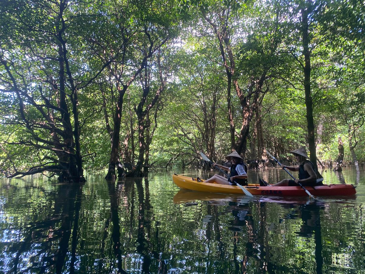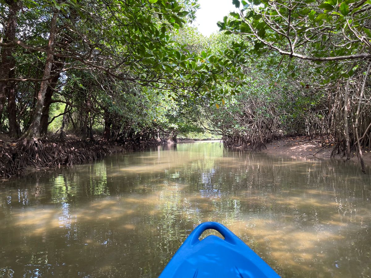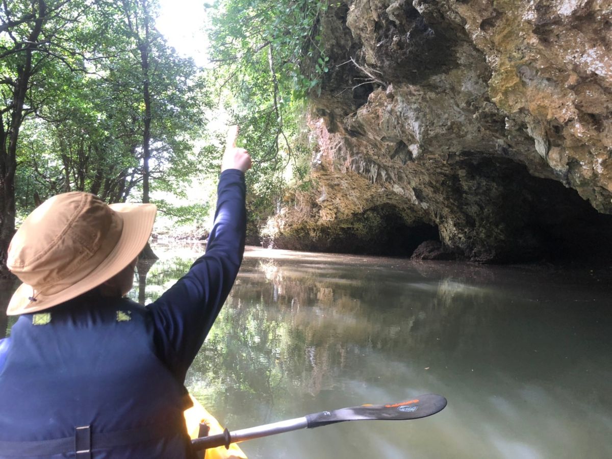 2時間半ほどのツアーでしたが、干潟散策でカニや植物を見たり、カヤックでマングローブの間や洞窟に入っていくのはとてもスリリングでした。