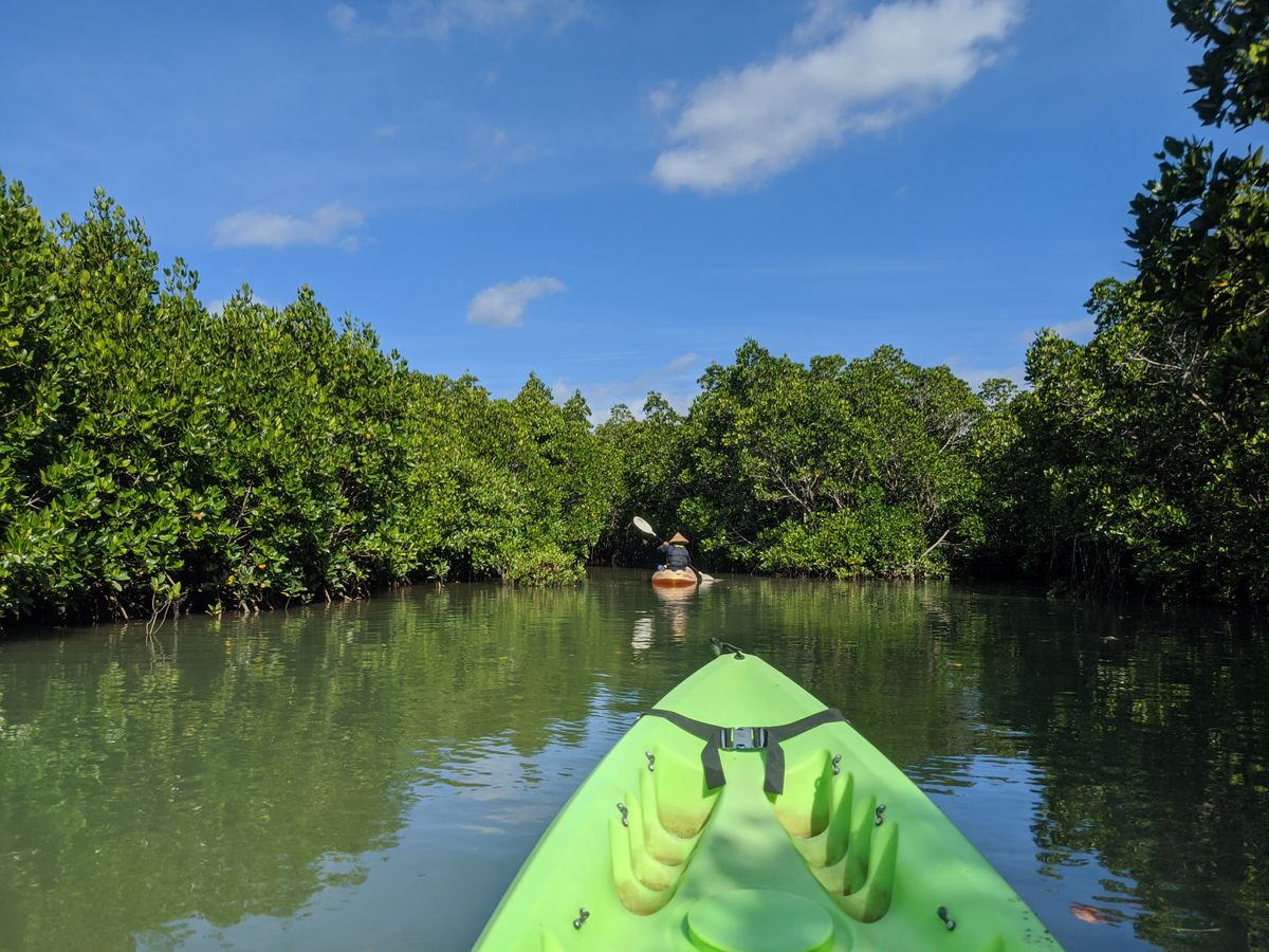 川でカヤックしながらマングローブと夕日を眺められて最高でした。川なので波も無く漕ぎやすかったです。