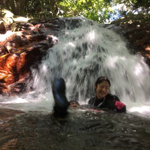 先日、二人で参加させて頂きました。初めての石垣島でワクワクドキドキの中、車での道中は、ツアー引率のお姉さんと楽しくお話をさせていただきながらポイントに到着!ジャングルのような道を歩いた先には見たこともない景色が広がっていました。今でも目に焼き付いています。滝遊びでは、レクチャーを受けながら飛び込んで遊んだり。本当に楽しかったです。子供から、大人まで楽しめると思います。素敵なツアーをありがとうございました。