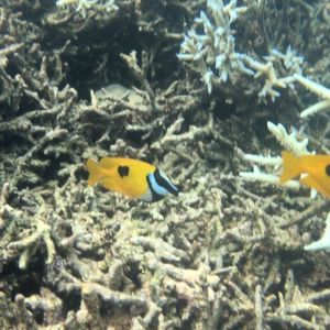 海の中には色とりどりのサンゴがあって、色とりどりの魚がいる。きれい。鮮やかなブルーの小さい魚が群れをなして泳ぐのがかわいい。大きな魚も表情が面白い。ガイドさんが潜ってなまこを取って見せてくれたり、ハリセンボンを捕まえて見せてくれたりした。ハリセンボン、丸くなってトゲトゲになるんだ。逃がしてやるとしぼみながら海の底へ消えていった。