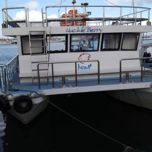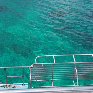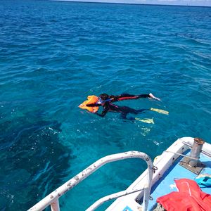 船の上でシュノーケリングの仕方をレクチャーされる。「助けてください。」の合図も教わる。できれば、「助けて」のサインを使わずにやりたいものだが。さて、どうか?