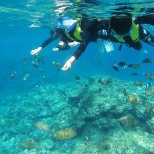大変アットホームな雰囲気の良いツアーでした。当方50過ぎの夫婦での参加でしたが、不安なく大変楽しい一時でした。魚にエサをあげる時は、手の回りいっぱいの可愛らしい魚が集まって来てびっくりしました。スタッフの皆さんお世話になりました。今度は、是非体験ダイビングに参加したいです。
