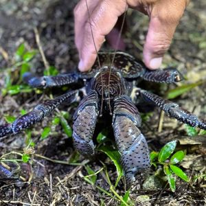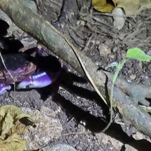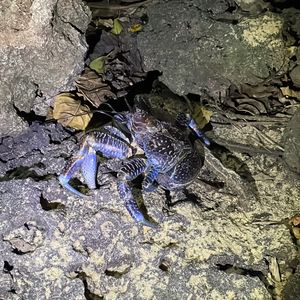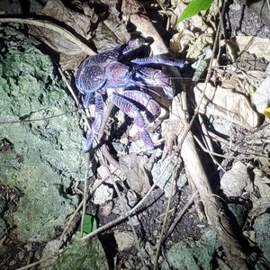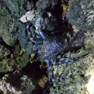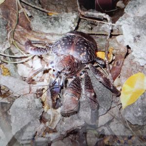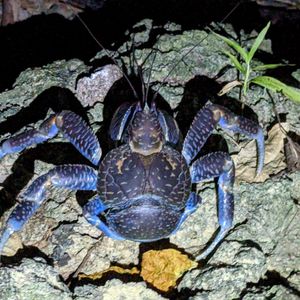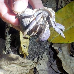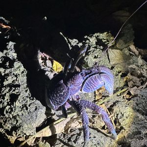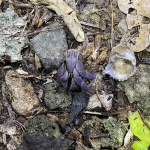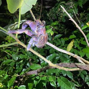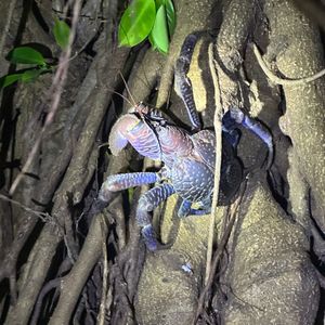 その次に、ヤシガニのいる場所へ移動しました。小さめのヤシガニと5センチくらいの小さいヤシガニを見ることができました。晴れが続いて乾燥していたのでヤシガニに遭えるか心配な天気でしたが、見られて本当に良かったです!