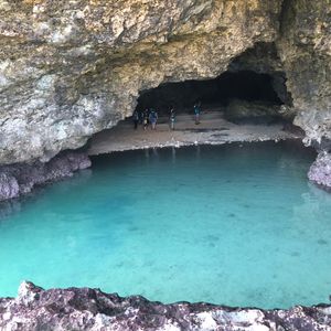 日暮れ前に浜からカヌーで出発!風や波も穏やかで、レクチャーいただいた方法で疲れることなく漕げました。洞窟に着くまでは、地形の説明やカクレクマノミ探しなどしました。洞窟では土地特有の文化について学ぶことができました。