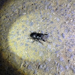 次は、生き物を探しながら、ホタルのいる場所へ車で移動しました。移動中も、ガイドの一朝さんは何かを見つけると、車を止め、車を飛び出し走って行き、捕まえたカエルやクワガタを見せてくれました。走行中、ハブやイノシシにも遭遇しました!