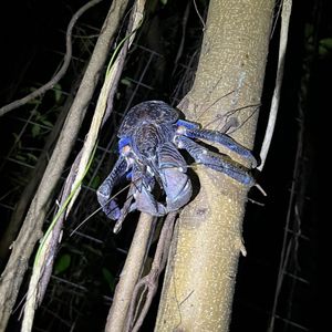 潮汐のタイミングか、ヤシガニが地面や枝上に大小ゾロゾロ、さらにサソリモドキ(蜘蛛の仲間)、サキシママダラ(蛇)、ワモンゴキブリ、ムラサキオカヤドカリなどが次々にご挨拶。夜空にはヤエヤマオオコウモリが飛び交い、聞き慣れないカエルの鳴き声など亜熱帯の生態を垣間見られました。なお、ヘビは滅多にいないとのこと(念のため)。