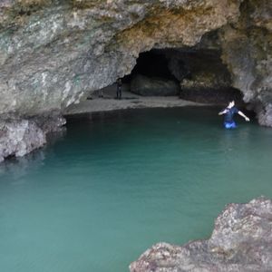 青の洞窟(世界中に同名の洞窟がある)内でのユーモアのある話、そこに行くまでの生物の話等面白かった。次の滝壺では率先してロープジャンプしてくれた。