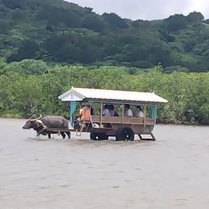 あいにくの雨の中でのツアー参加となりました。コースとしては、西表島でのマングローブツアー→西表島のバス観光→由布島に水牛車で渡る→由布島でフリータイム&昼食というコースでした。雨だったので、綺麗な海などは残念ながら見れなかったのですが、非日常の景色や環境はそれなりに楽しめました。個人的には水牛車が一番印象的で風情があります。また、由布島では水牛に触れたり、写真を撮ったりすることができました。総じて、雨ではあったものの、逆に石垣では雨でやることは限られるので、雨だったからこそこのツアーに参加してよかったなと思いました。