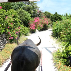 水牛車は初めてではなく、数回乗ったことがありますが、添乗するおじいの話によって満足感が左右するものです。今回のおじいは、私の求めるスローライフな雰囲気を味わうに丁度良い朴訥なしゃべりに三線の演奏、とても満足のいくものでした。途中牛が動こうとしないという可愛いハプニングもありながら、それがかえって楽しい思い出になり、良い思い出になりました。