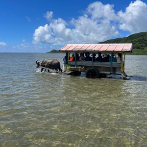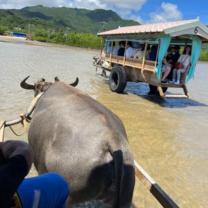 由布に向かう際、水牛車に乗りました。行きはお姉さんが三味線を弾き語りしてくれて、沖縄感を感じさせられました。牛も可愛かったです。由布で無料で水牛と写真が撮れるところも良かったです。