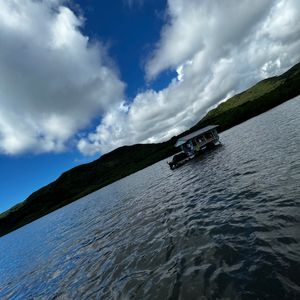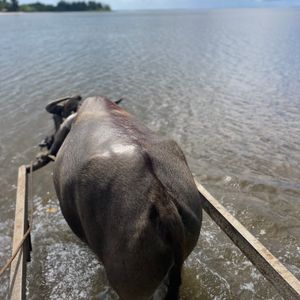 水牛がたくさんの人を乗せて島へ渡るのは