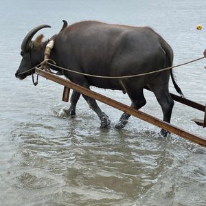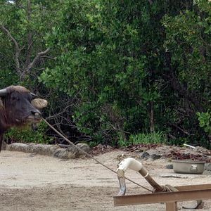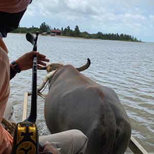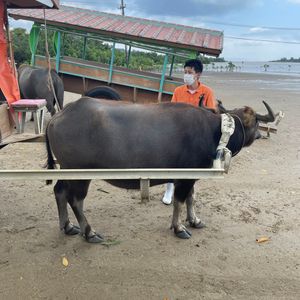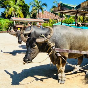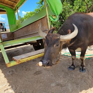 由布島へは水牛車に揺られての移動になりましが、水牛君がなかなか言うことを聞かず、立ち止まってしまうのでその都度叔父さんがバナナの皮のようなものでお尻ペンペンして動かしていました。