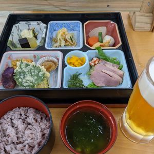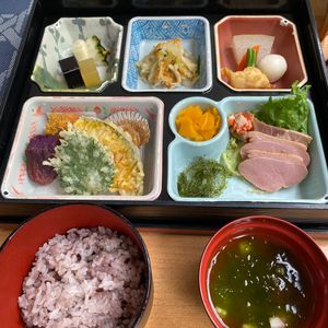 由布島植物園での昼食では、地元の食材を使った由布島幕の内弁当は人気でございます。