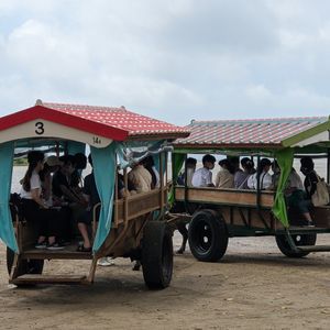 今回は車いすが一人いたので、どうなるか心配していたのだが、一部ビーチで砂地とかの障害はあったが、殆どの場所でバリアフリーであった。牛車に乗るのもスロープがあり、問題ない。