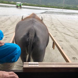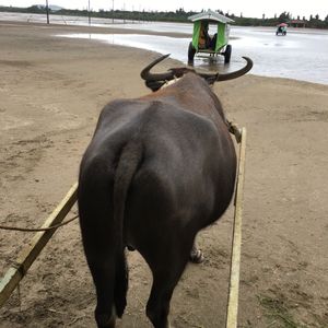"まぶやー”と言うマイペースな水牛さんで、途中休暇したり、放尿したり(笑)でもちゃんと内輪差を考慮して大回りするとても賢い水牛さんでした。