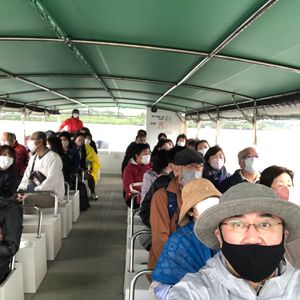 私は船の左側に座ったのですが席に余裕があれば右側に座られる事をお勧めします。往復するので同じ景色を観れるのですが前半の方がいろいろな解説と共に観れるかなって思います。