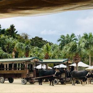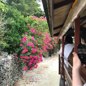 由布島への移動は水牛車!初めての体験でしたが、ゆったりと歩く水牛とガイドの方が奏でる三線に癒され、とても心地よい時間でした。由布島では、様々な植物を観賞したり、ルイくんとの記念撮影や珍しい蝶々を見ることができたり、予想以上に楽しくかったです。また、ランチは沖縄料理メインのお弁当で、一品一品楽しみながら美味しくいただきました!