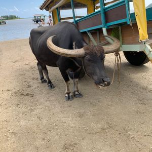 油布島の牛車の水牛、おとなしいけど動作(考えている事)が愛らしい‼️