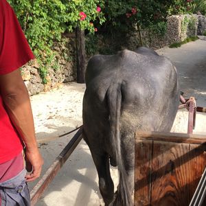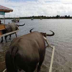 水牛乗車では乗る前から水牛が沢山の人々を引っ張って行くのが可哀想と思っていました。