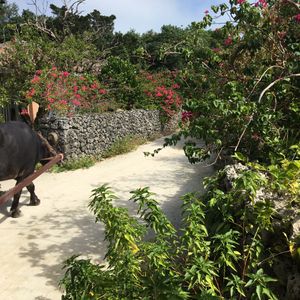 全体では長めの時間で由布島のように舗装されてない道を歩くこともあるので歩きやすい足元をおすすめします。