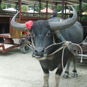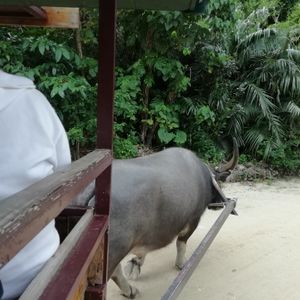 水牛車は思ってた以上に牛さんが頑張って、狭い道を上手に曲がる運転技術が素晴らしかったです。子どもも『シマ君頑張れ‼️」と、牛さんの名前を呼んで応援してました。最後にシマ君と一緒に撮っていただいた写真を、ずっと大事に持って、喜んでました。