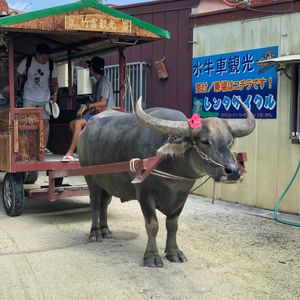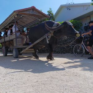 竹富島までのフェリー代と水牛と竹富島を巡るツアー代が含まれており、お得です。ゆったりとした水牛と楽しむことができました。最後には写真を撮っていただき、その写真を購入することもでき、思い出づくりにはぴったりだと思います。実際に私たちは写真を購入して、家に飾る予定です。石垣島に行って午後半日時間があるという方はぜひ水牛と一緒に竹富島を楽しんでみてはいかがでしょうか(^ ^)