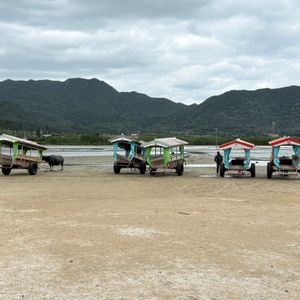 天気があまり良くなかったのですが、以前から体験したかった水牛車に乗ることができて満足でした。自由時間は海を見に行きましたが、徒歩だったため、バスの時間が迫っており、あまりのんびりはできなかったのが残念でした。竹富島から石垣島へ戻る時、港で船が来るのを待っていたのですが、大きなフェリーの出発の案内はあったのですが、私達が乗る船のアナウンスは全くなく、フェリーと同じ時間の出発だったため、フェリーに乗るための列と私達が乗る高速船の列が分かりにくく、最初フェリーの列に並んでいたので、慌てて正しい列に並び直しました。同じように戸惑っている人が何人もいたので、アナウンスがあると良かったと思います。