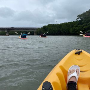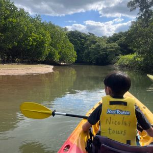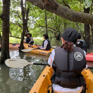 宮良川を4人、二人ずつのペアでカヤックツアーに参加しました。マングローブにも種類があって、あんな長い種が水中に突き刺さって成長することを教えていただきました。ありがとうございました。