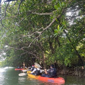 小1の子供と夫婦の3人で参加させて貰いましたが、充実したとても良い時間となりました。カヤックでマングローブの狭まったギリギリの所を通ったり、洞窟の中に入ったり、カニやコウモリ、ハチの巣やトビハゼ、シオマネキなど、色々な生き物にも会えました。植物や生き物の生態のお話などを聞きながら、奥地へ進んでいくのはドキドキ感もあり子供は特に大喜びでした。途中、別のツアー客とも接近しましたが、コチラの進路の方が断然良かった様に感じました。ガイドして下さった女性(オーナー?)もとても親切で、カヤックの説明も丁寧でとても勉強になりましたし、飲み物や携帯防水ケースをはじめとした様々な細やかな配慮など、ツアー中の色々な場面で優しいお心遣いを感じました。マングローブカヤックを楽しみたいなら、間違いなくコチラをお勧めしたいです!