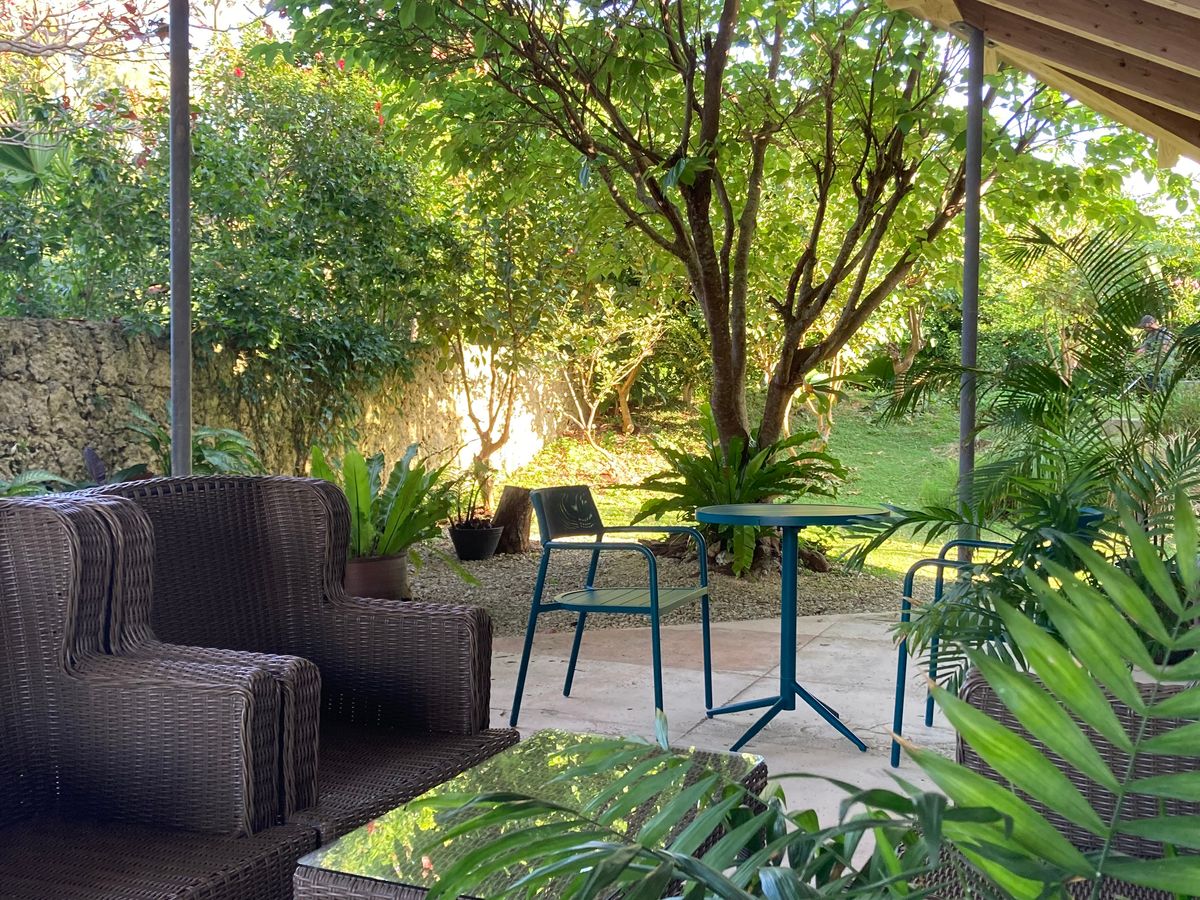 送迎がないので、タクシーかバスを利用しなければなりません。タクシーは石垣島市街地からだいたい1500円。バスなら東運輸リゾートライン利用で最寄りバス停は「唐人墓」で徒歩10分以下かな。ただ施設は丘の上なので行きにバスを使うと上りなので、ヨガ前に疲れてしまうかも(笑)。