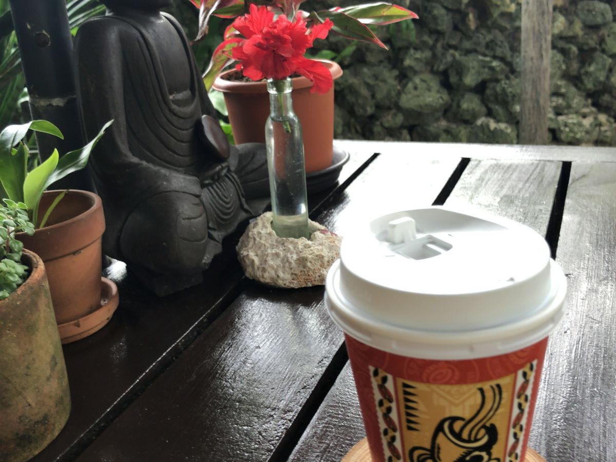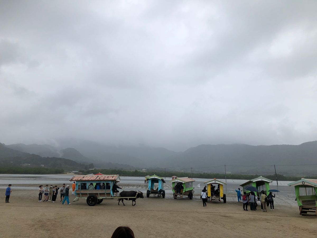 バスに乗り水牛体験の場所へ。ゆらゆら街中を水牛で陸地を移動。残りの自由行動30分ほどあるが、15時くらいだったので午前の営業終わってたり元旦なのでお店がやってない。小さなカフェを見つけてコーヒーと紅芋ソフトクリームを注文。外で食し寒い。