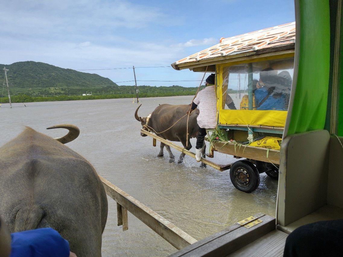 雨が降ったり止んだりといそがしい天気でしたが、そのおかげか1日に3回も素晴らしい景色の中の虹を見ることがでしました。どれも貴重な経験でしたが、私は由布島への水牛車がとても印象的でした。あの景色は忘れないと思います。ガイドの方の歌や話も良かったです。3歳の息子も楽しかったようで、牛の車にまた乗りたいと言っていました。感動的な1日になりました。