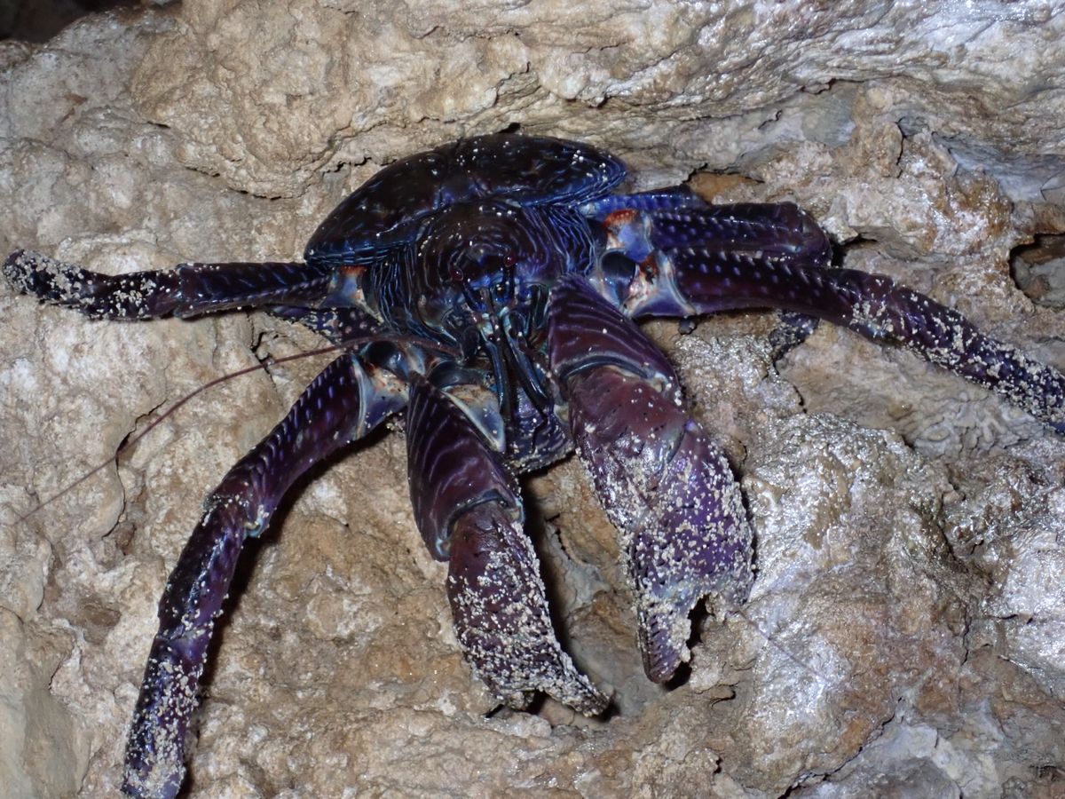 悪天候の中でも楽しめるポイントをガイドしてくださり、あっという間に時間が過ぎていきます。青の洞窟では風や波の影響で、すっかり砂などの位置が変わったそうですが、鍾乳石の説明を受けました。その最中にはヤシガニも出現し、自然全体でサービスしてくれたようです。シュノーケリングも風の影響で縮小でしたが、それでもイシダイの群れを餌で誘き寄せ、魚の群の中で泳ぐ体験をさせていただきました。これもガイドさんのサービス精神旺盛なおかげです。車の移動中も、いろんな野生動物を紹介してくださいました。
