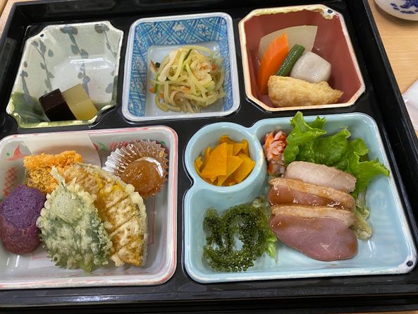 由布島特製幕の内弁当が美味しかったです。特に豚耳の味付けが最高です。海ぶどうもあり大満足でした。