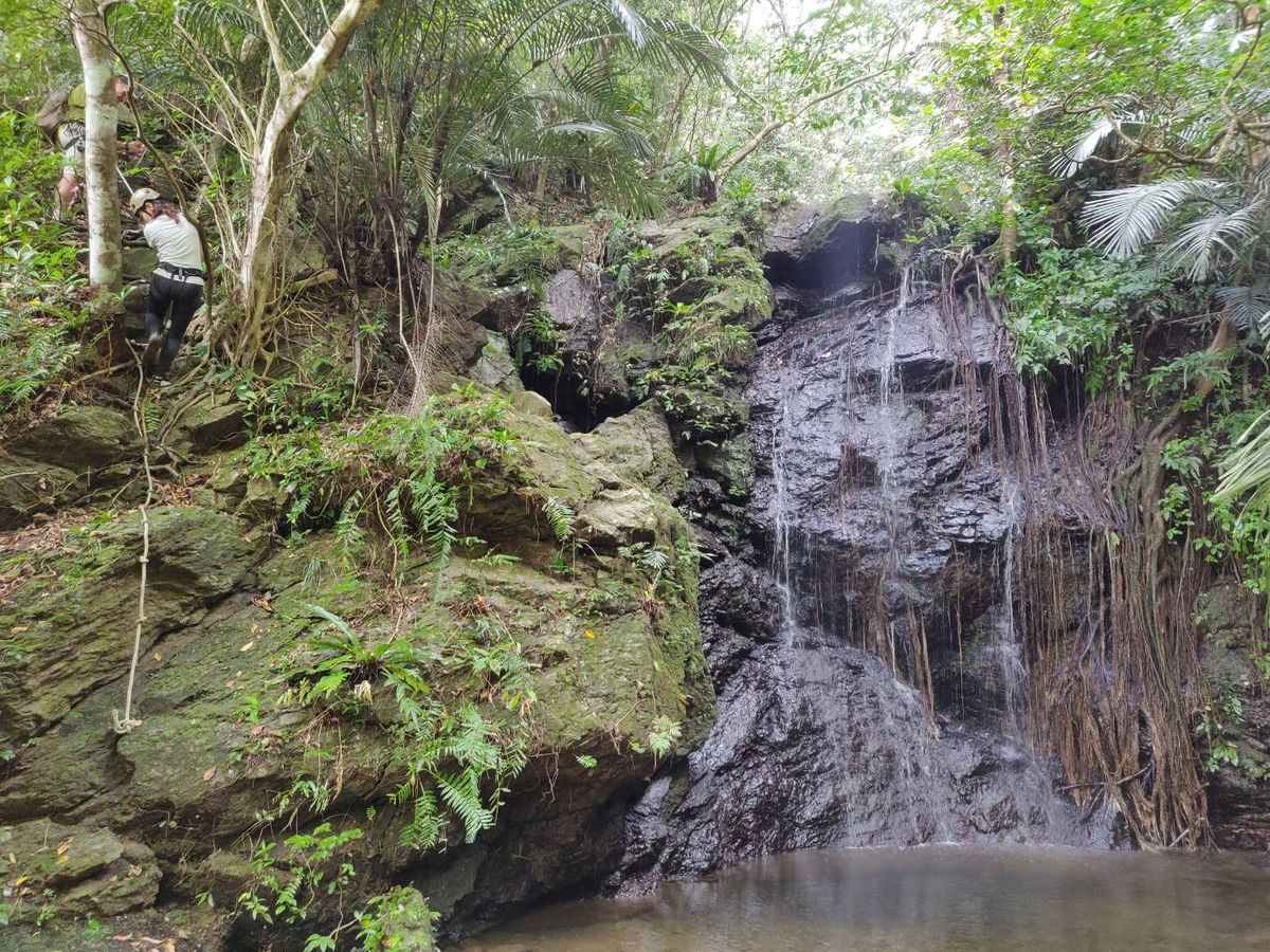 青の洞窟(世界中に同名の洞窟がある)内でのユーモアのある話、そこに行くまでの生物の話等面白かった。次の滝壺では率先してロープジャンプしてくれた。