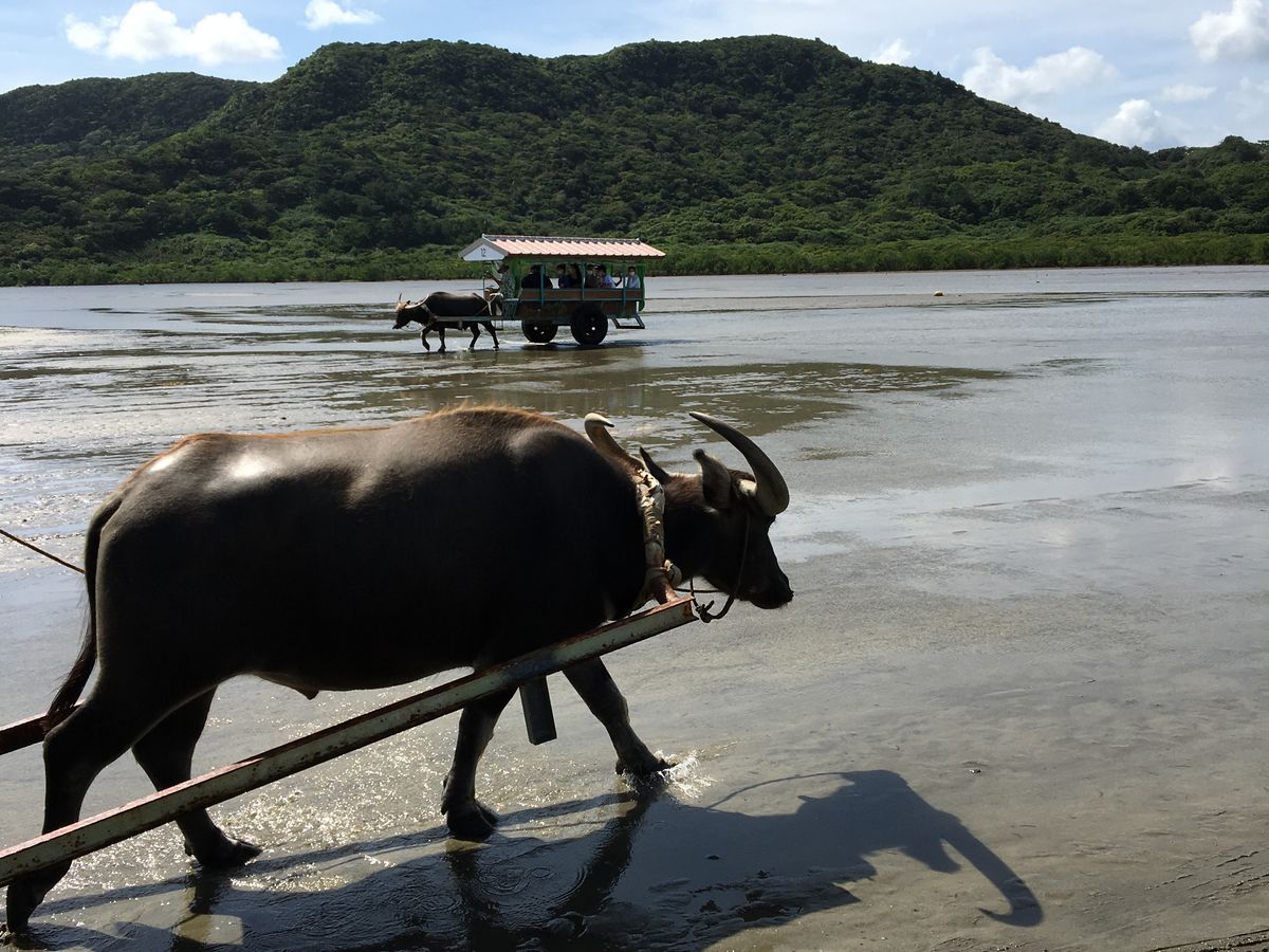 その日の潮の干満によっては水牛車の雰囲気もまた違ってくるので、そこも見どころの一つとなっております。