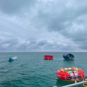 写真にあるように、さまざまな種類のアクティビティがあり、今回は私たち2名、他に5人組と3人組のお客さんがいて、アトラクションを引っ張るジェットスキーが2台あったため、少しの待ち時間で沢山乗ることができました。