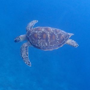 波が高くて残念ながらマンタのポイントには行けませんでしたが、アオウミガメには出会えました。スタッフの方も親切で、一人参加の私のシャッターを押すのに、声がけをしていただきました。