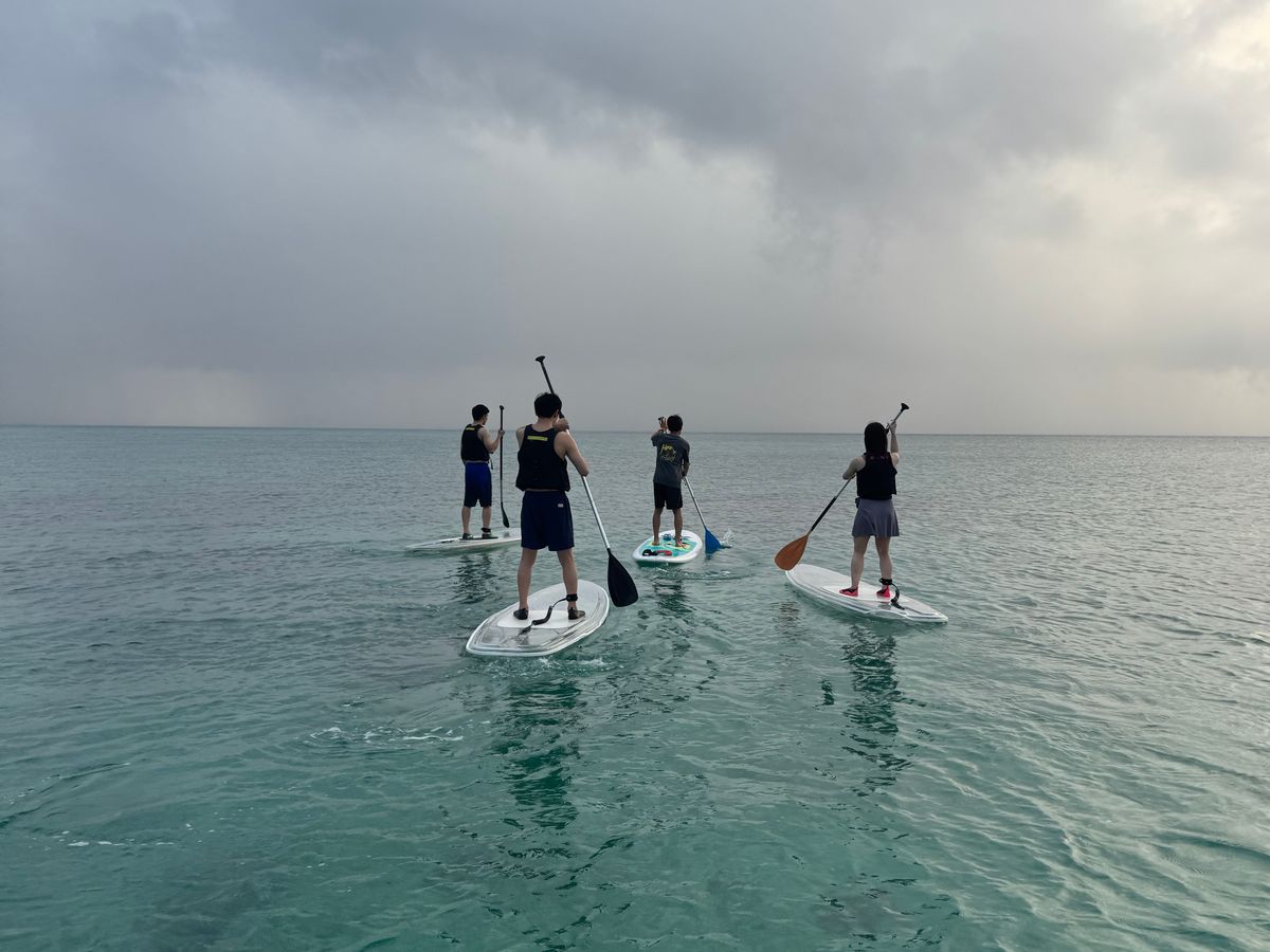 今回はSUPでサンセットを見るツアーに申し込みました。当日はあいにくの曇りで、サンセットを見ることはできませんでしたが、初めてのSUPを楽しむことができました。1番驚いたことは海の綺麗さでした。私の地元にも海はありますが、透明度が全然違いとても感動しました。また、インストラクターの方の説明もとてもわかりやすく、必ずみなさん誰でもサッパーになれると思います。