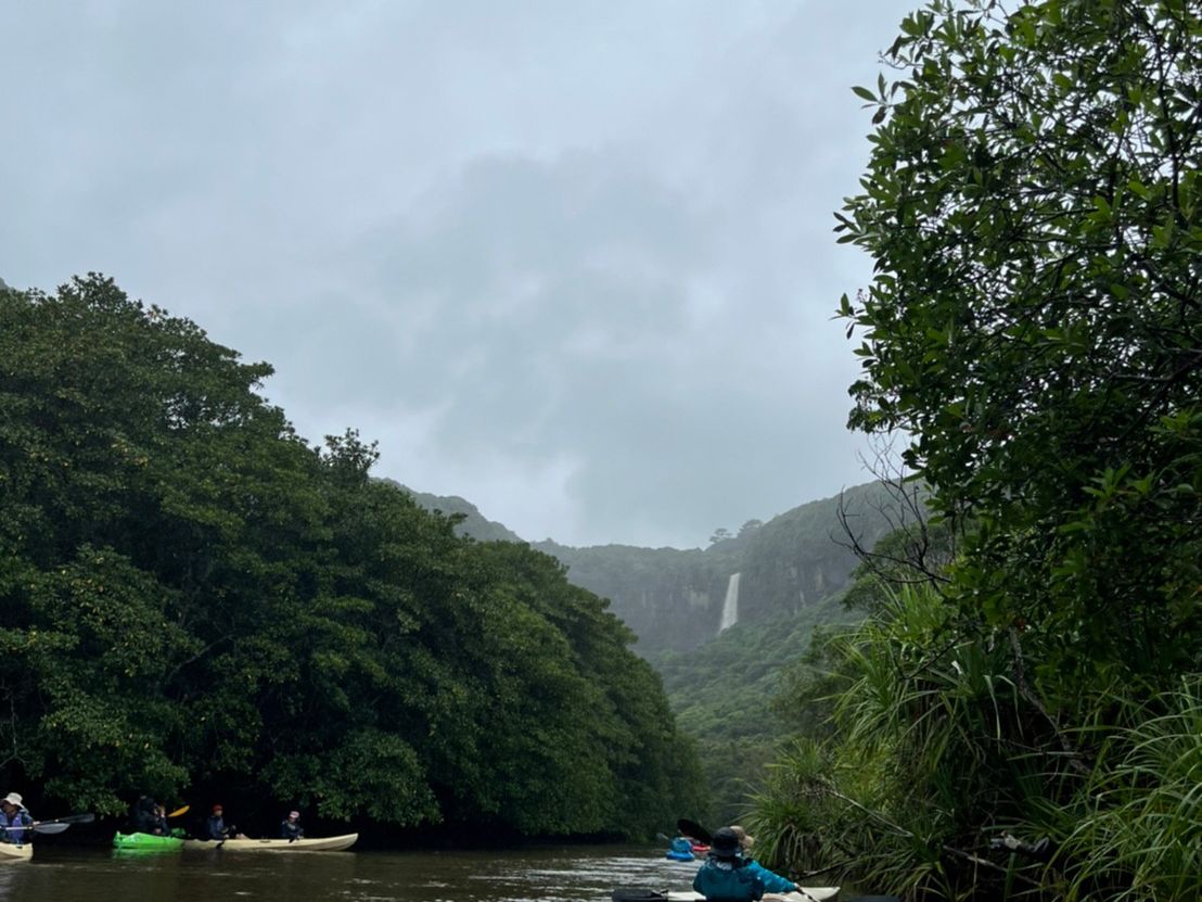 あいにくの雨でしたがカッパを着てカヌーを楽しみました。途中雨が強くなったり止んだりしましたがマングローブの緑に癒やされました。