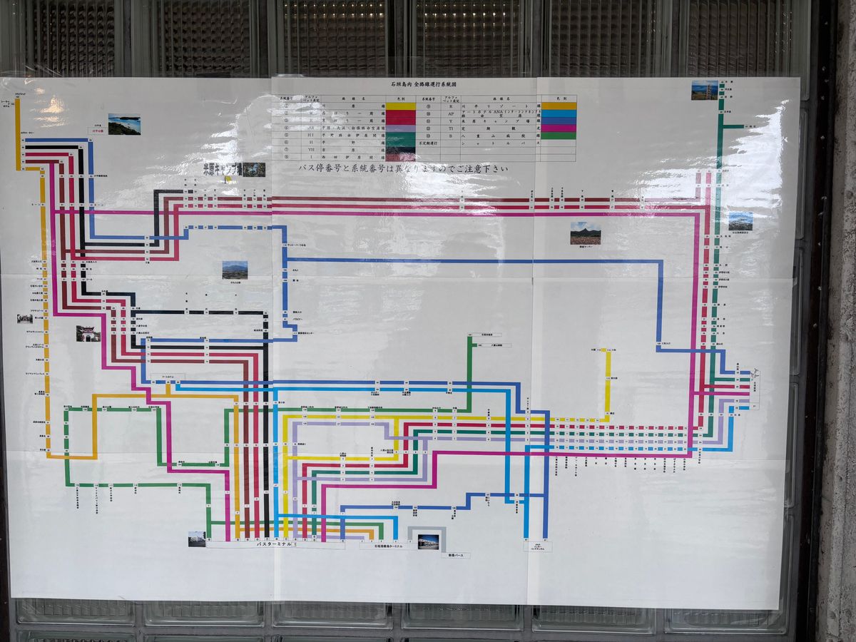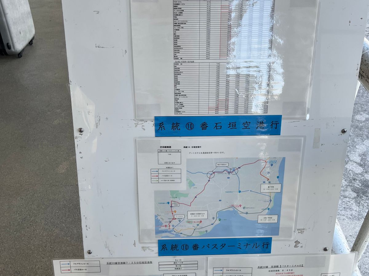 石垣島では、島の殆どにバス路線が有ります。空港から離島ターミナルまでは、30分に一本以上有るので便利です。