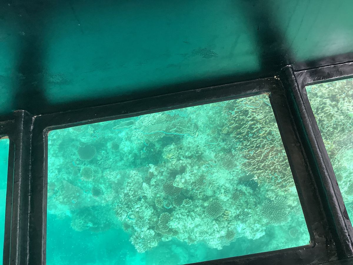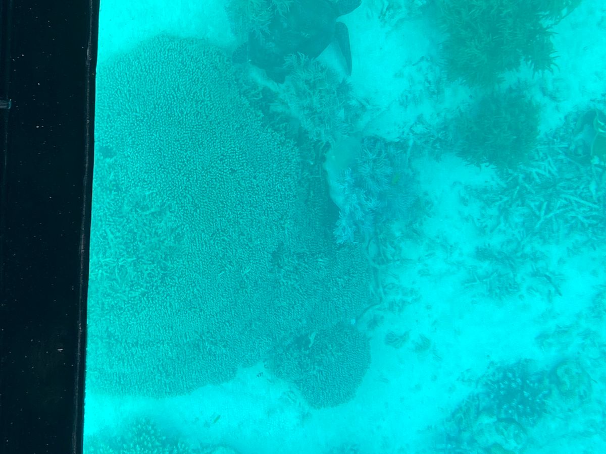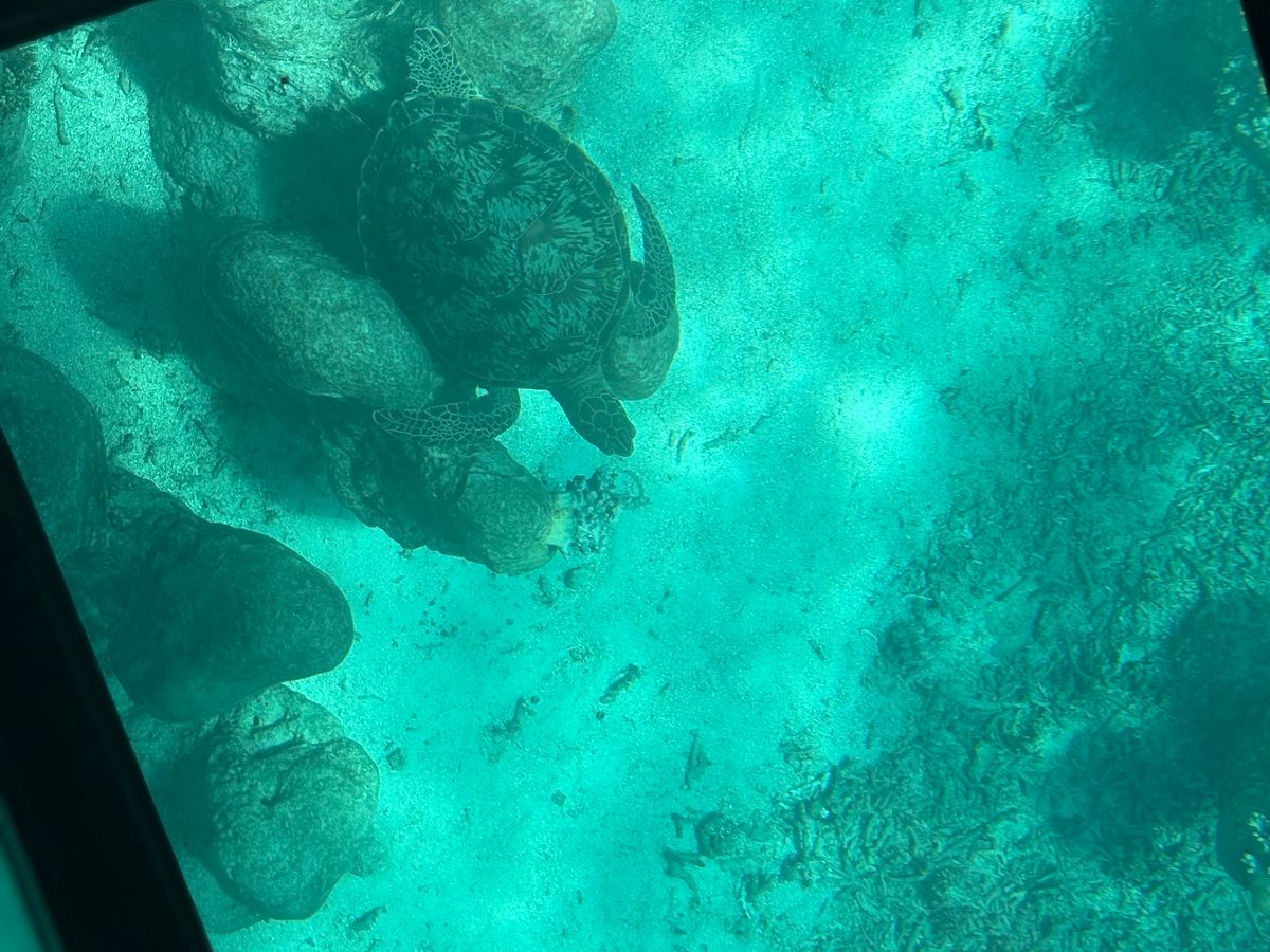 グラスボートでサンゴ礁の海の中を眺めて、ウミガメも見られました。