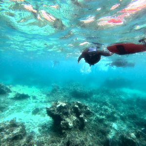 夫婦で参加しましたが、とても楽しめました。風の影響でシュノーケリングの場所は変更になったものの、少し泳ぐとサンゴ礁が一面に広がっており、海面からとても近い場所にサンゴが見えることに感動しました。また、すぐ近くを魚たちが泳いでいて、とても楽しい体験でした。