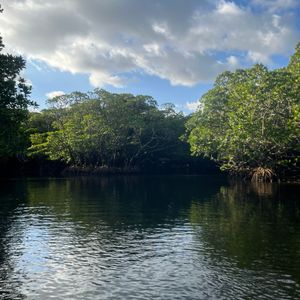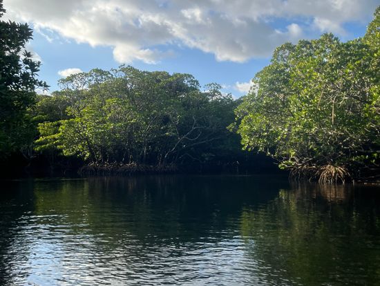 数種類のマングローブに囲まれた河をカヤックで進んでいきます。マングローブの下を潜ったり、潮位が高い時は洞窟の中にも入れるようで探検家になったような気分で楽しめました。