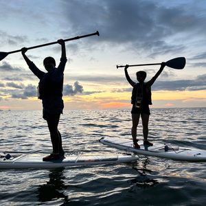 落ちるのが醍醐味だから、何回でも落ちていいよ!というインストラクターさんの励ましの元、頑張って立ってみました。初めは立つのが怖いのですが、慣れてくるととても楽しかったです!一度だけ、見事落ちましたが(笑)、風が気持ちよくて、海の上は最高でした。夕日も綺麗で、写真を撮っていただけるサービスも含まれており、とっても素敵な写真を撮っていただきました。
