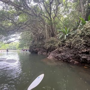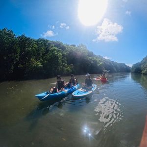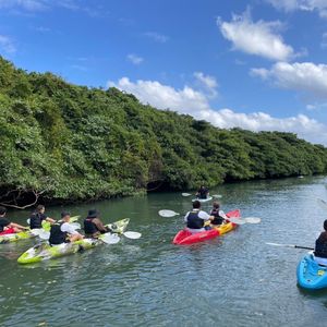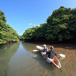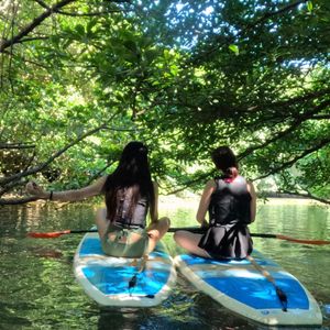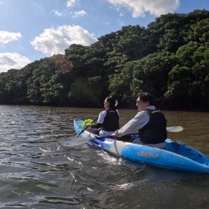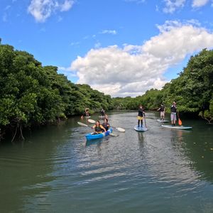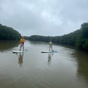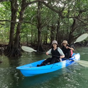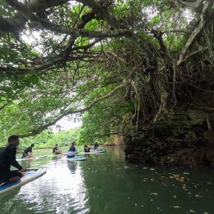SUPは初体験で難しそうでしたが、だんだん慣れてくると自然の中でゆったりとした時間を過ごすことができました!コースの途中ではマングローブの間を抜けたり、鍾乳洞を見たりすることもできます。水面に近い分、カヌーよりも泳ぐ魚や蟹等、水中の様子を観察することができると思います。インストラクターの方が木々や生き物等、について色々教えてくださり、自然について学ぶこともできました。帰りの車内で写真を送っていただけたので、すぐに見ることができたのも嬉しかったです!