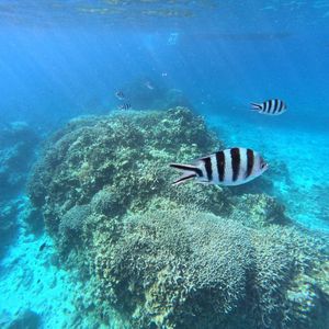 待ちに待った海中へ!ゴーグルを付けて海の中を覗くと、きれいな魚やサンゴを見る事ができました。