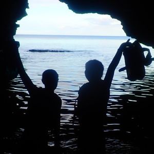 動画を撮ってもらいながら岩の上から3人で一緒に海に向かってジャンプ‼️